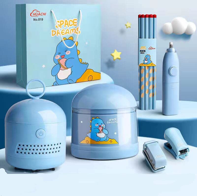 Included Products: electric pencil sharpener, electric eraser, desktop vacuum cleaner and 10 eraser refills